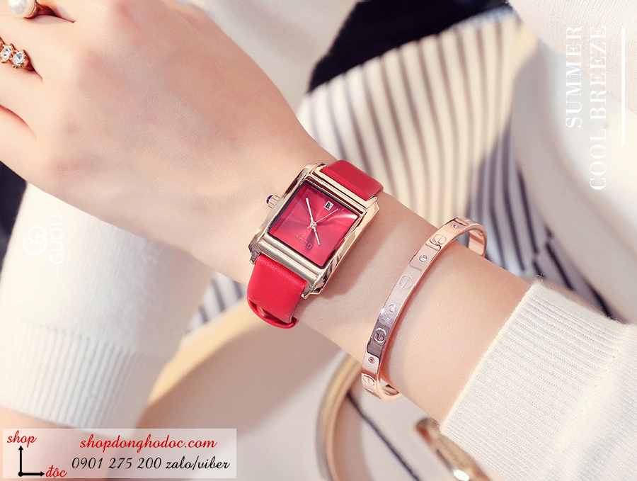 Đồng hồ nữ dây da mặt chữ nhật màu đỏ quyến rũ ĐHĐ4404