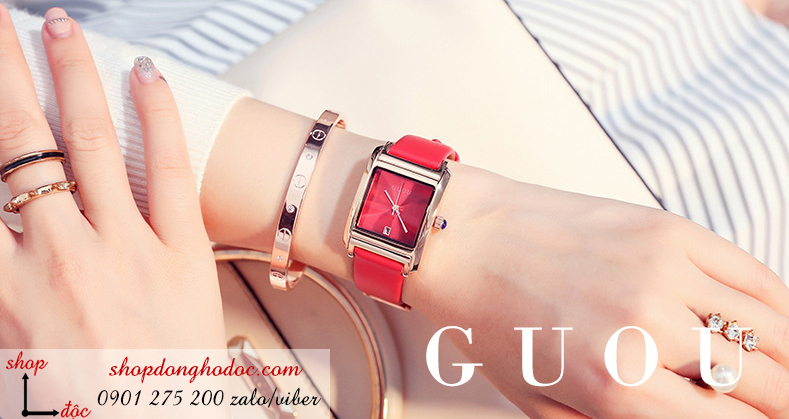 - Tên: Đồng hồ nữ dây da mặt chữ nhật màu hồng ngọt ngào Guou ĐHĐ4403