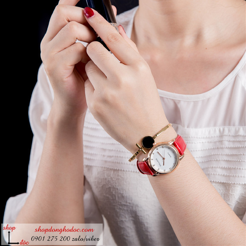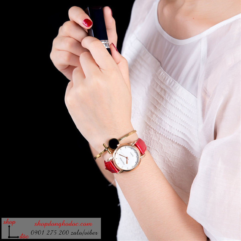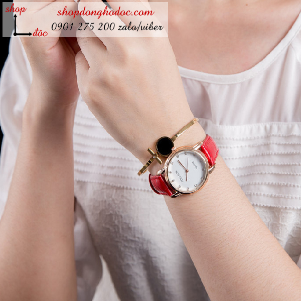 Đồng hồ nữ dây da mặt tròn màu đỏ sang chảnh ĐHĐ3101