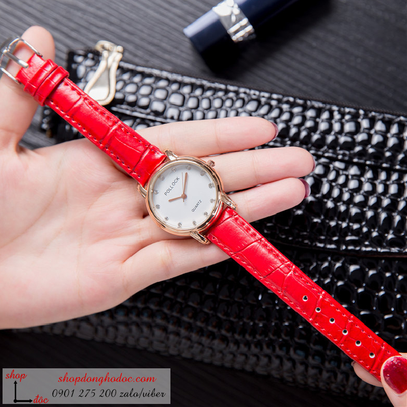 - Tên: Đồng hồ nữ dây da mặt tròn màu đỏ sang chảnh ĐHĐ3101