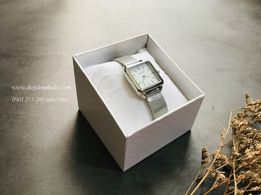 - Tên: Đồng hồ nữ dây kim loại lưới bạc mặt vuông trắng hiện đại Ananke ĐHĐ22501