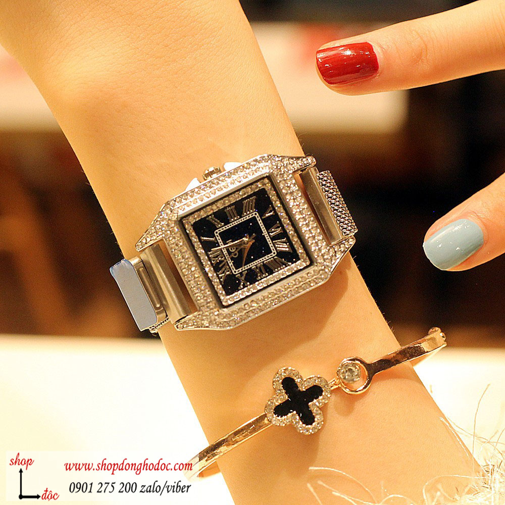 - Tên: Đồng hồ nữ dây kim loại lưới khóa nam châm mặt vuông đính đá màu bạc sang trọng Gedi ĐHĐ15201