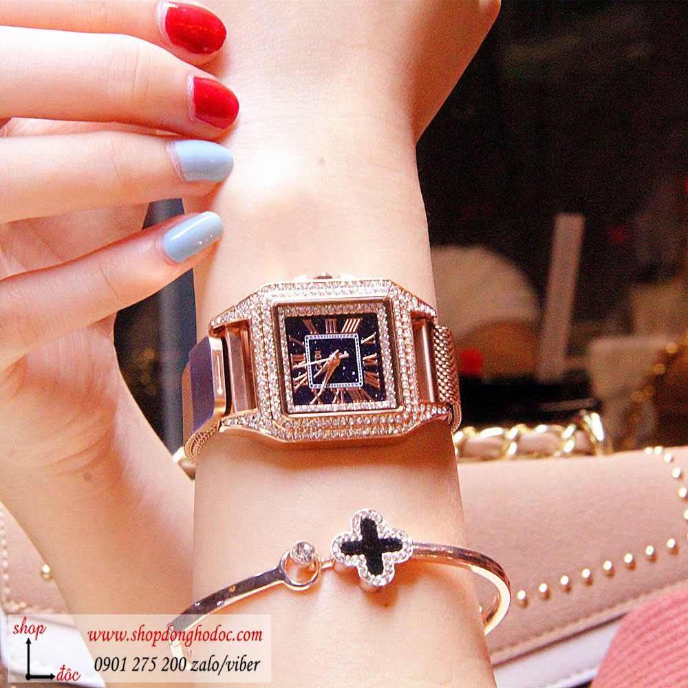 - Tên: Đồng hồ nữ dây kim loại lưới khóa nam châm mặt vuông đính đá màu vàng sang chảnh Gedi ĐHĐ15203