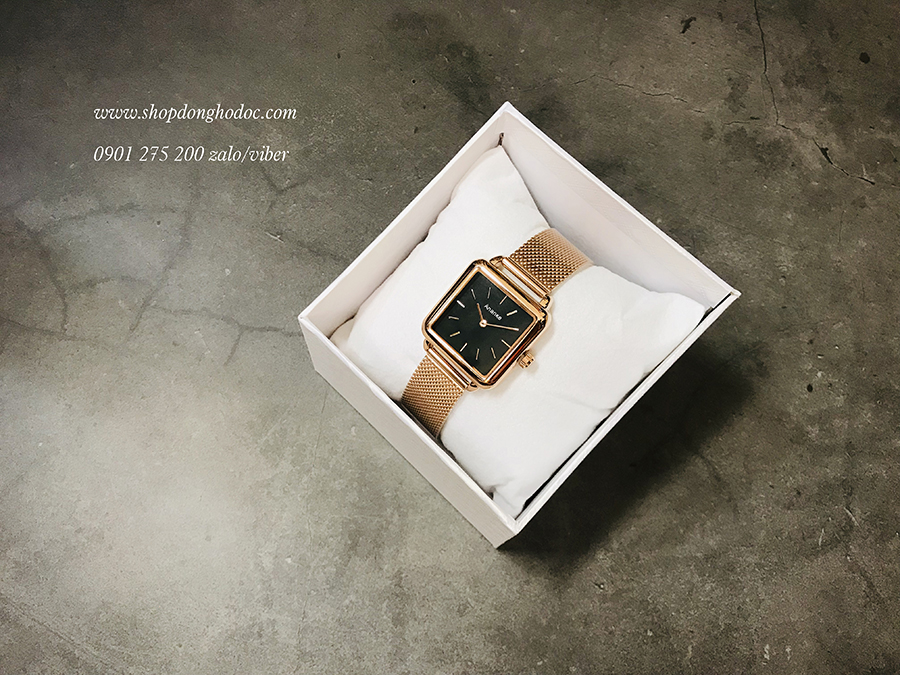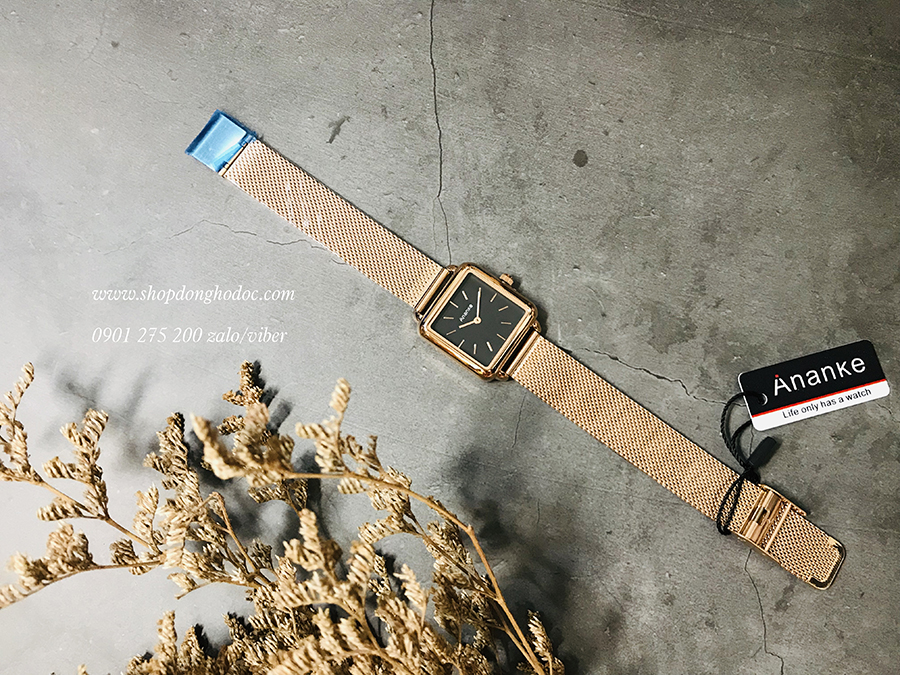 - Tên: Đồng hồ nữ dây kim loại lưới vàng mặt vuông đen quý phái Ananke ĐHĐ22503