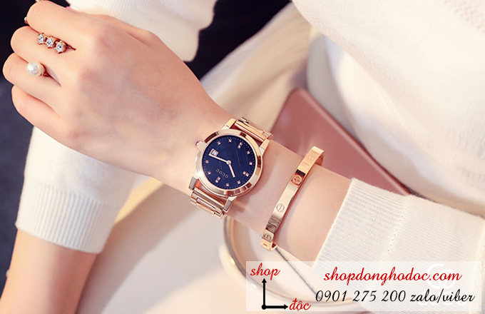 Đồng hồ nữ dây kim loại mặt tròn đen sang trong ĐHĐ5405
