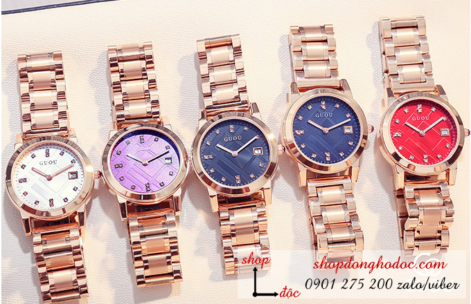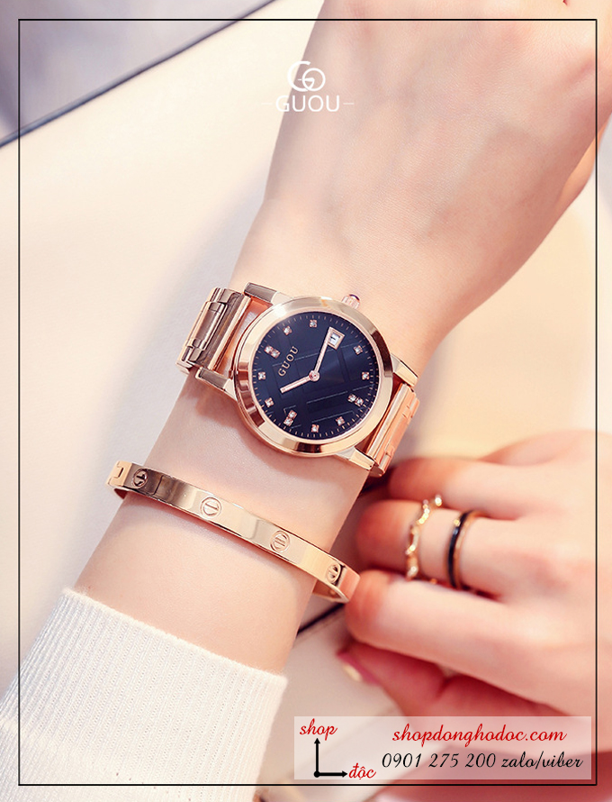 Đồng hồ nữ dây kim loại mặt tròn đen sang trong ĐHĐ5405 thiết kế theo phong cách cực kỳ sang trọng. Mặt số được đính đá nổi bật trên nền trắng càng làm tăng thêm sự quyến rũ cho đôi tay của nàng. ĐHĐ5405 là sự lựa chọn xuất sắc cho nàng khi đi dự tiệc hay những dịp quan trọng bởi vì khả năng thu hút ánh nhìn và sự quý phái mà Guou ĐHĐ5405 mang lại.
