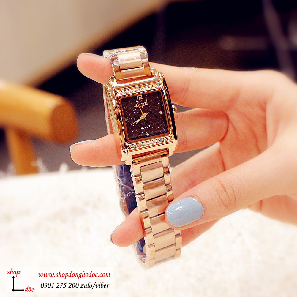 - Tên: Đồng hồ nữ dây kim loại mặt vuông đính đá màu vàng sang chảnh Yhpd ĐHĐ14403