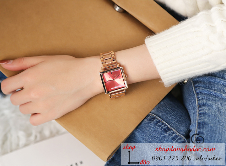 Đồng hồ nữ dây kim loại mặt vuông đỏ thanh lịch ĐHĐ5304