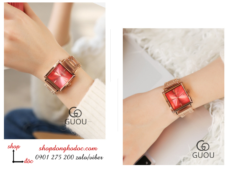 - Tên: Đồng hồ nữ dây kim loại mặt vuông đỏ thanh lịch ĐHĐ5304