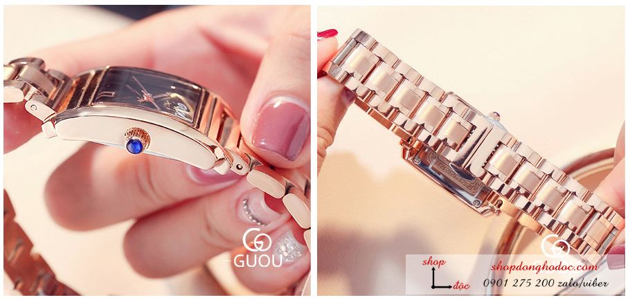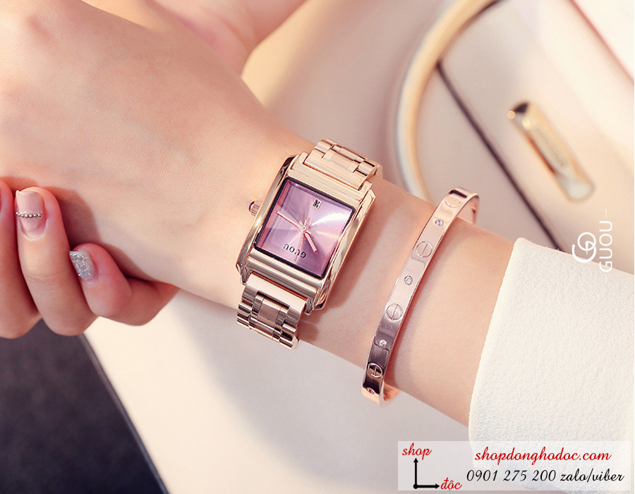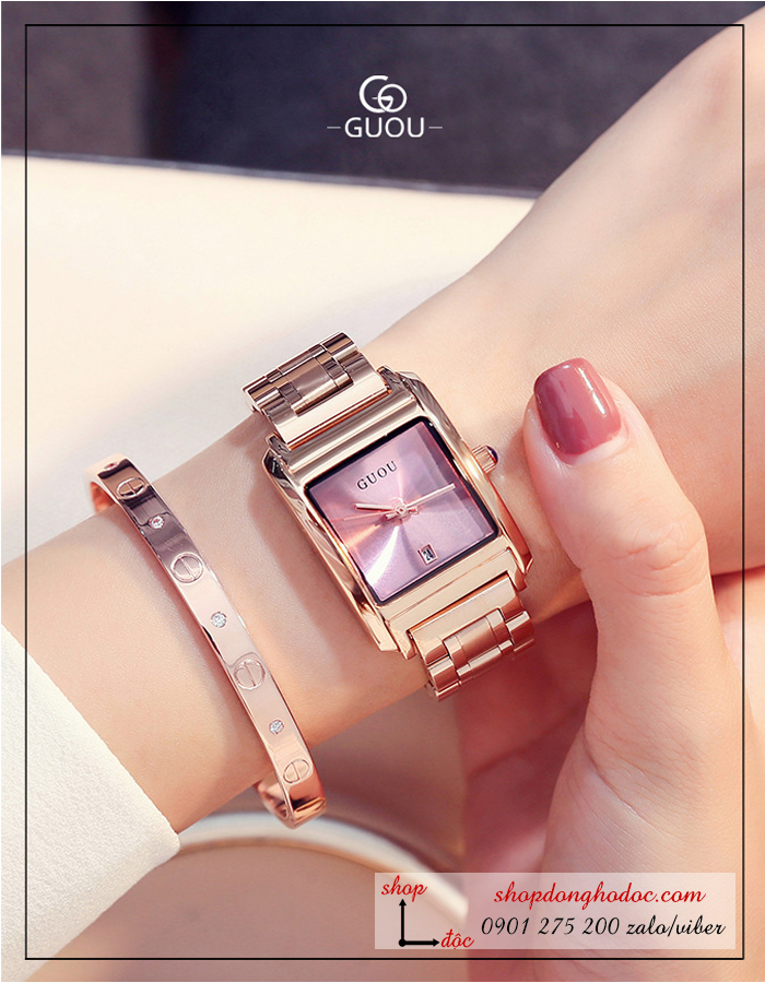 Đồng hồ nữ dây kim loại mặt vuông hồng ngọt ngào ĐHĐ5502 được nhiều nàng yêu thích bởi những thiết kế dẫn đầu xu hướng đồng hồ thời trang với phong cách trẻ trung, năng động. Guou ĐHĐ5502 với vỏ ngoài bằng thép không gỉ mạ vàng hồng đầy nữ tính. Dây đeo cũng màu vàng tạo vẻ đẹp thời trang khi đeo trên tay các quý cô. Mặt số với thiết kế 3 kim gồm mặt phụ chỉ ngày tiện lợi.