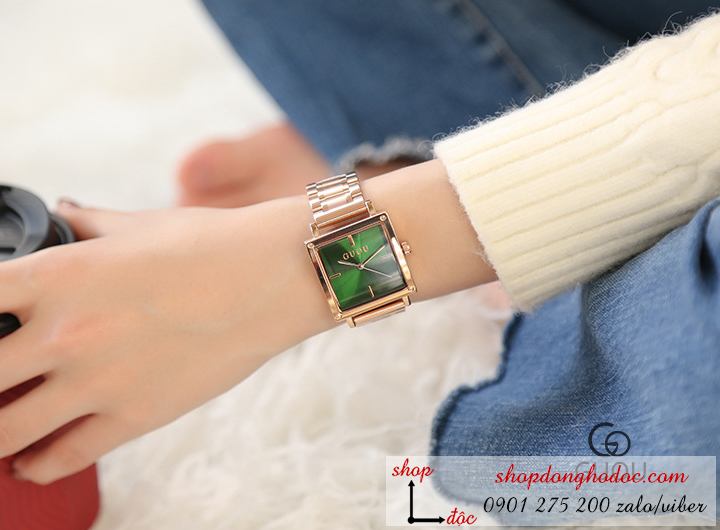 Đồng hồ nữ dây kim loại mặt vuông xanh cá tính ĐHĐ5303