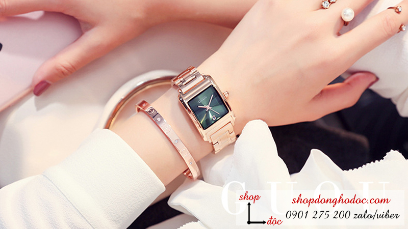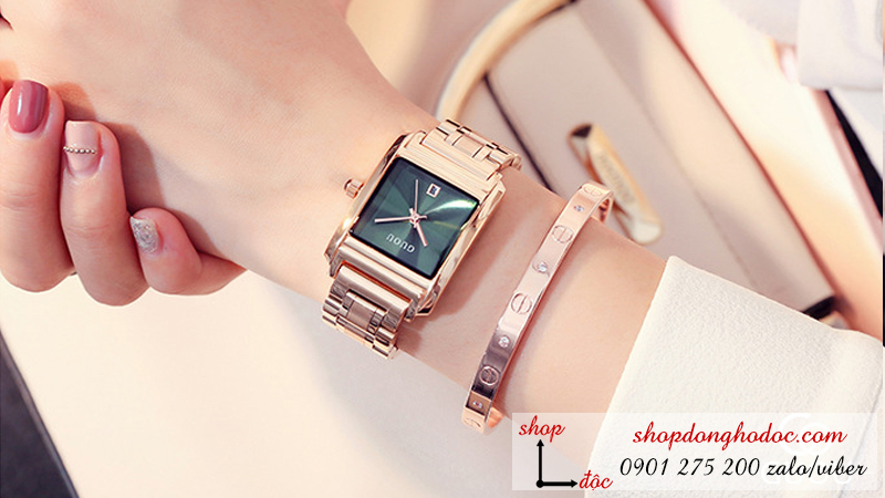 Đồng hồ nữ dây kim loại mặt vuông xanh thời thượng ĐHĐ5503 được nhiều nàng yêu thích bởi những thiết kế dẫn đầu xu hướng đồng hồ thời trang với phong cách trẻ trung, năng động. Guou ĐHĐ5503 với vỏ ngoài bằng thép không gỉ mạ vàng hồng đầy nữ tính. Dây đeo cũng màu vàng tạo vẻ đẹp thời trang khi đeo trên tay các quý cô. Mặt số với thiết kế 3 kim gồm mặt phụ chỉ ngày tiện lợi.