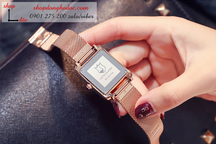 - Tên: Đồng hồ nữ dây kim loại vàng mặt vuông đen quý phái ĐHĐ4803