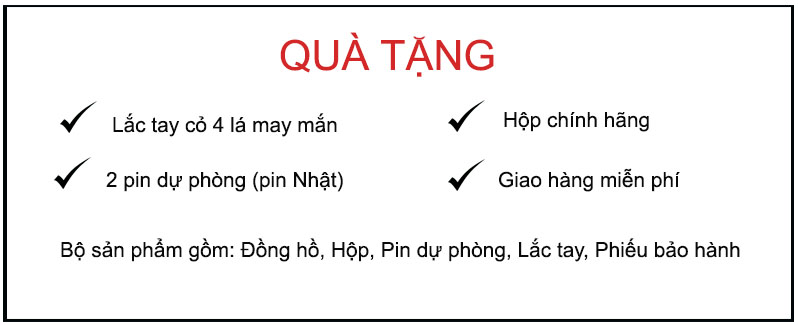 - Miễn phí thay dây cùng size 1 lần, thời hạn trước 12 tháng kèm theo thẻ bảo hành còn thời hạn.